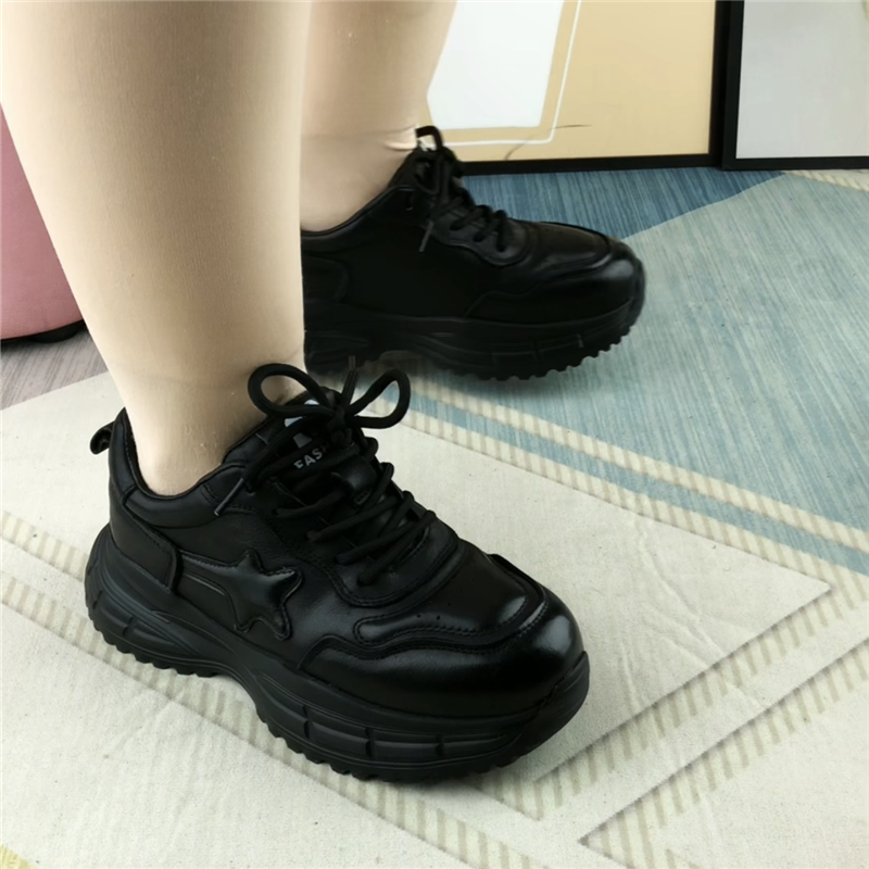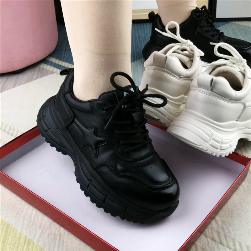 真皮圆头休闲鞋女系带老爹鞋女百搭轻便防滑舒适软皮软底小白鞋女