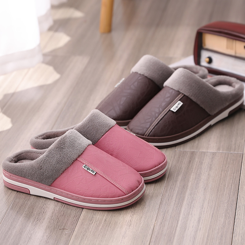 pu新款皮男秋冬季居家室内棉拖鞋女防水冬月子鞋厚底防滑保暖情侣