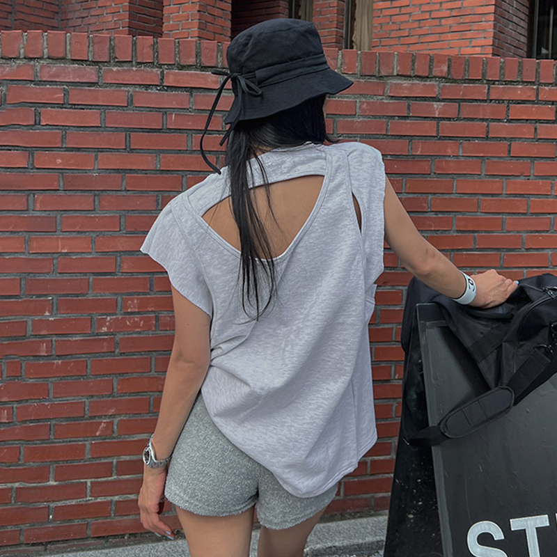 时尚个性后背镂空T恤衫女夏季法式气质宽松休闲显瘦潮款百搭上衣