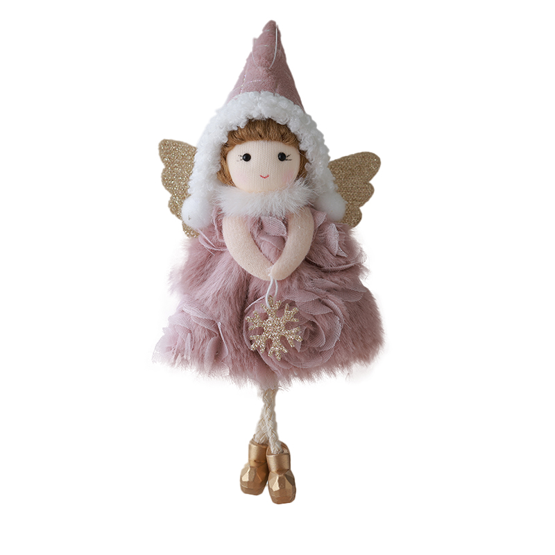 小天使礼物圣诞节日装饰白色毛绒娃娃翅膀可爱鹿角公仔圣诞树挂件