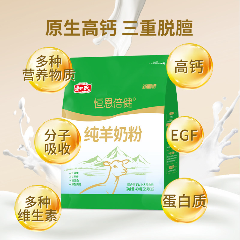 【厂家直营】和氏新国标成人羊乳粉恒恩倍健纯羊奶粉A2奶源400g