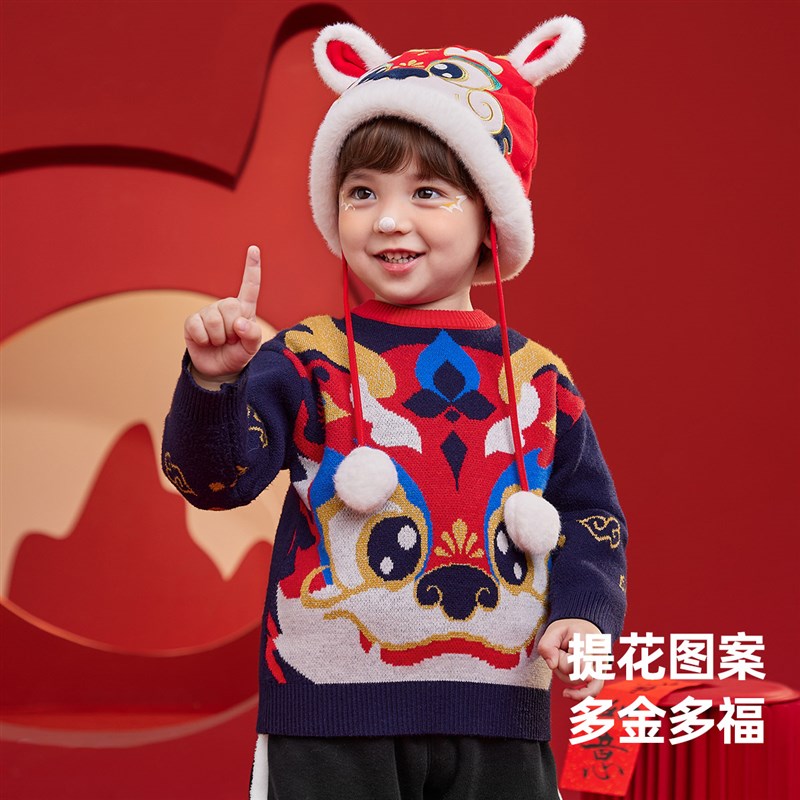 儿童毛衣冬季宝宝冬装2023新款女童新年保暖加厚上衣男童童装冬季