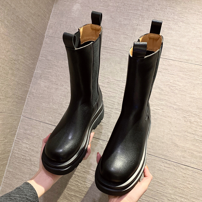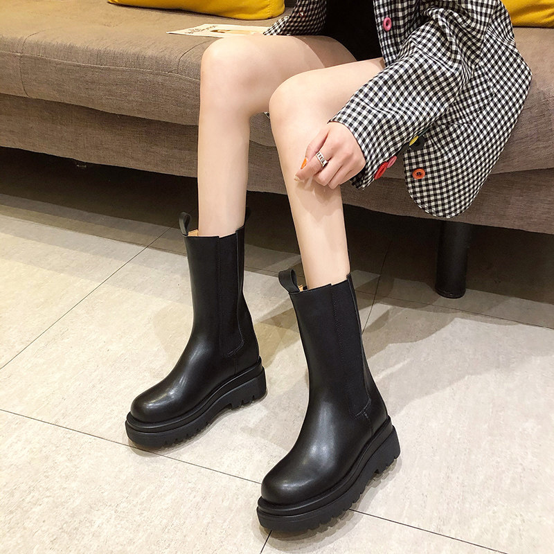 大码女靴41一43烟筒靴女中筒靴粗腿胖mm大筒围马丁靴切尔西短靴子