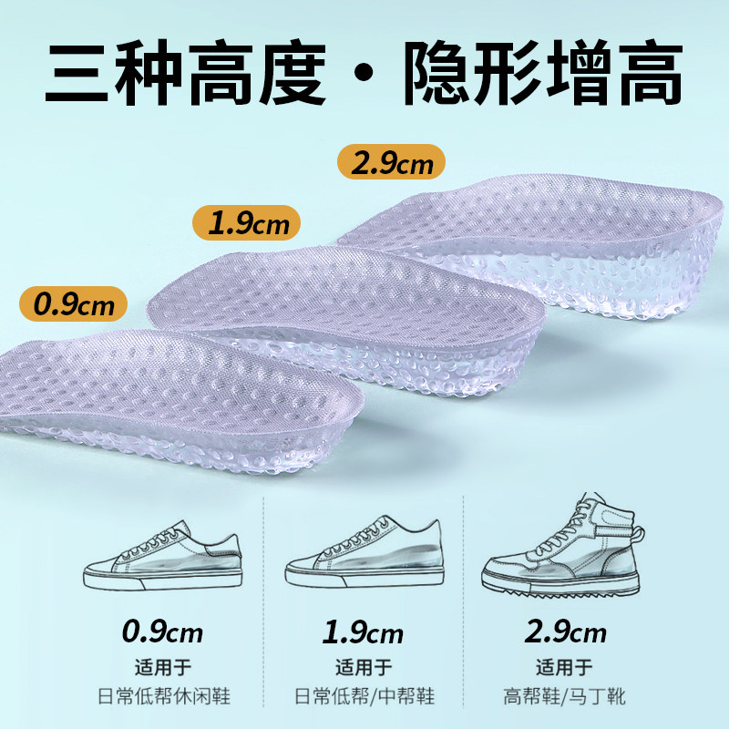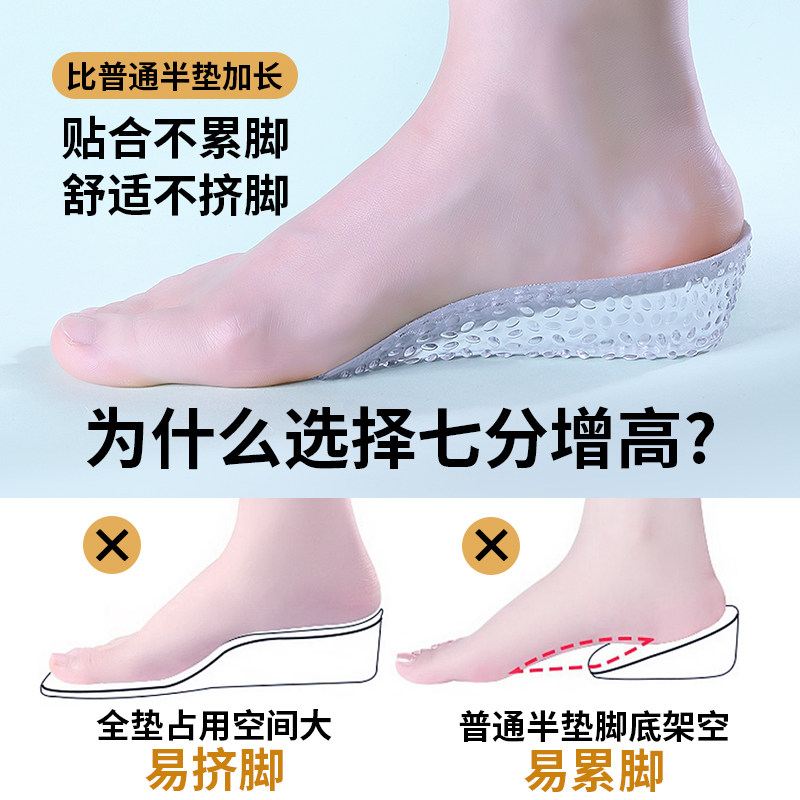 七分硅胶内增高鞋垫男女软底舒适不累脚隐形足弓支撑运动鞋增高垫
