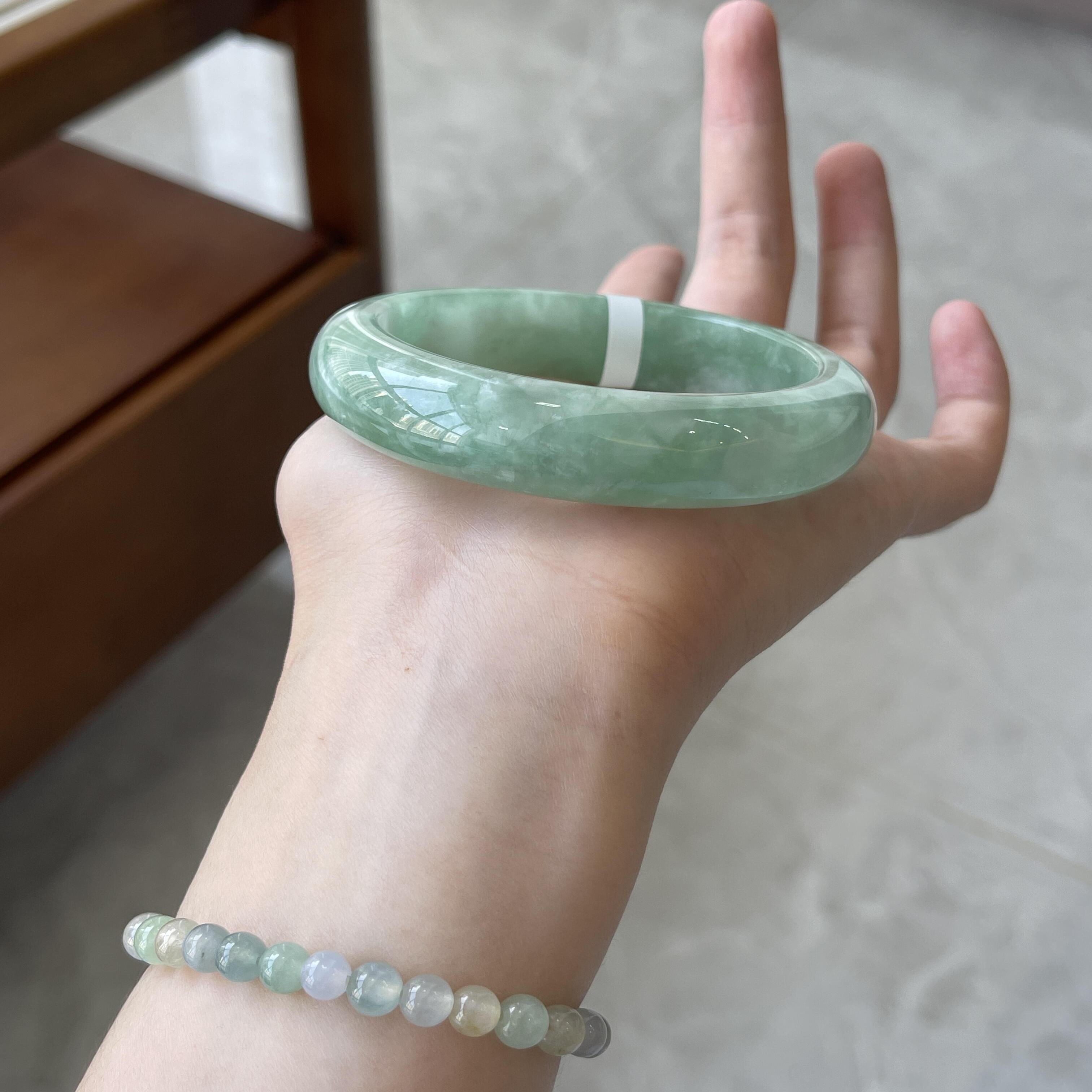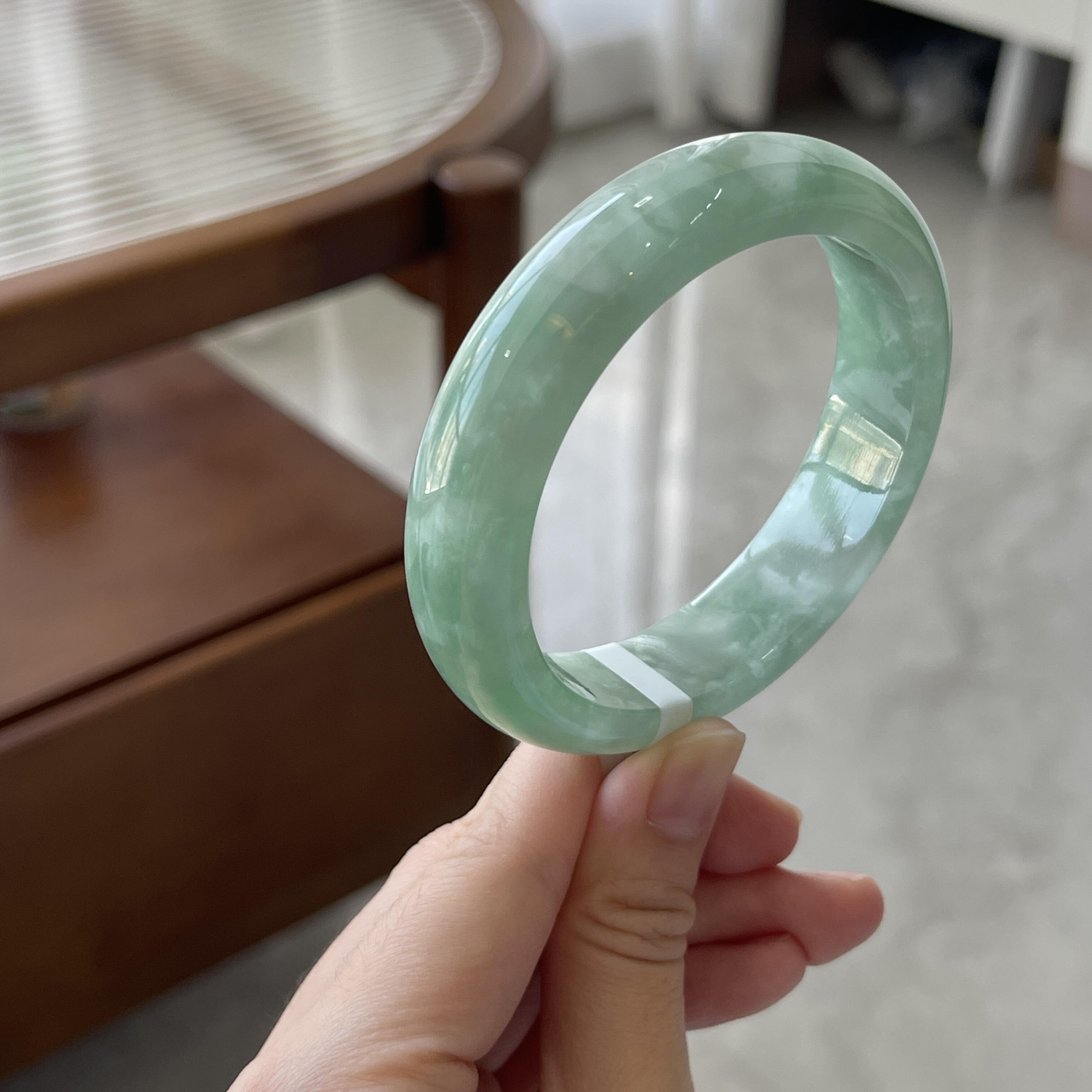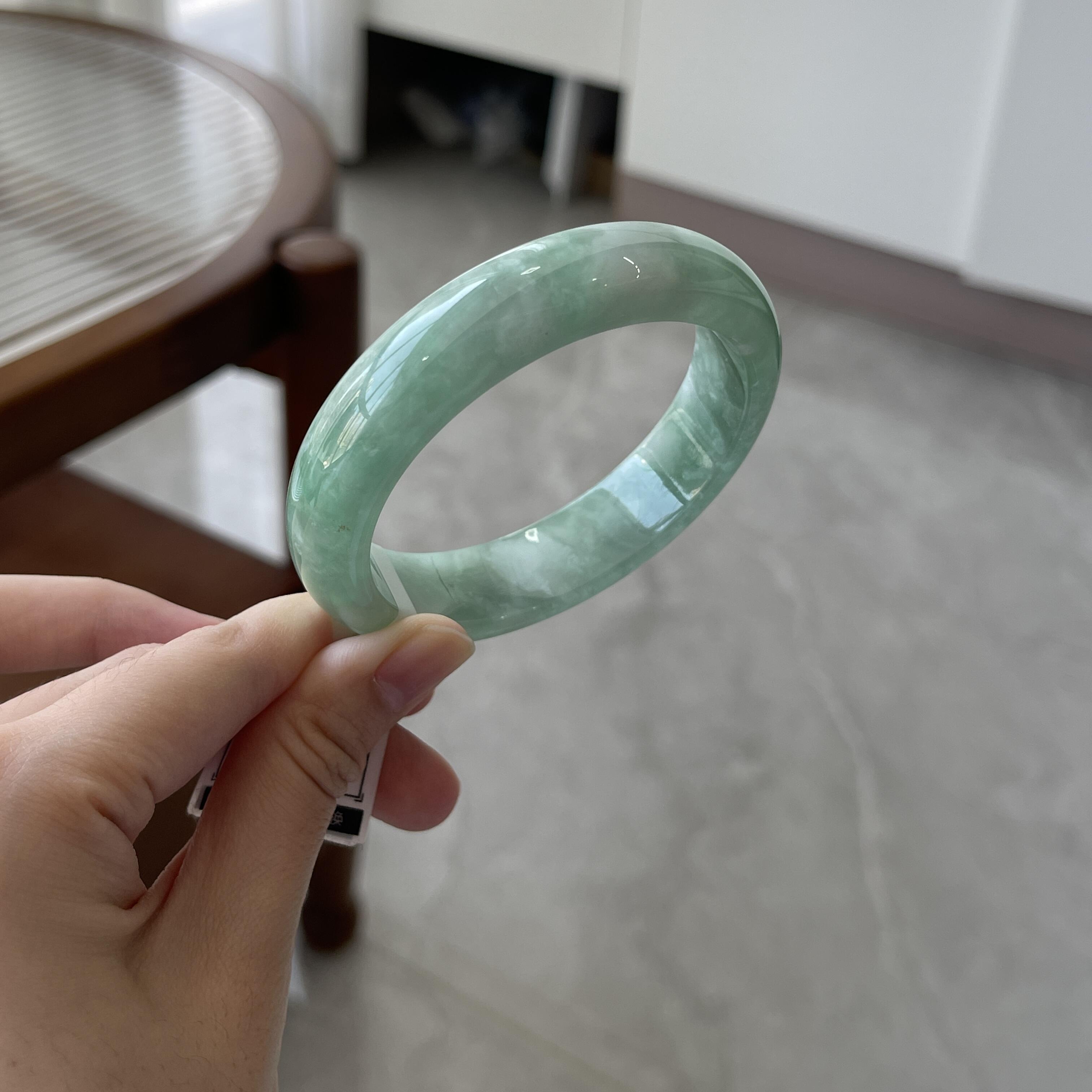 玉长情缅甸翡翠玉手镯子女款油青飘花贵妃镯冰透真玉正品玉石定制