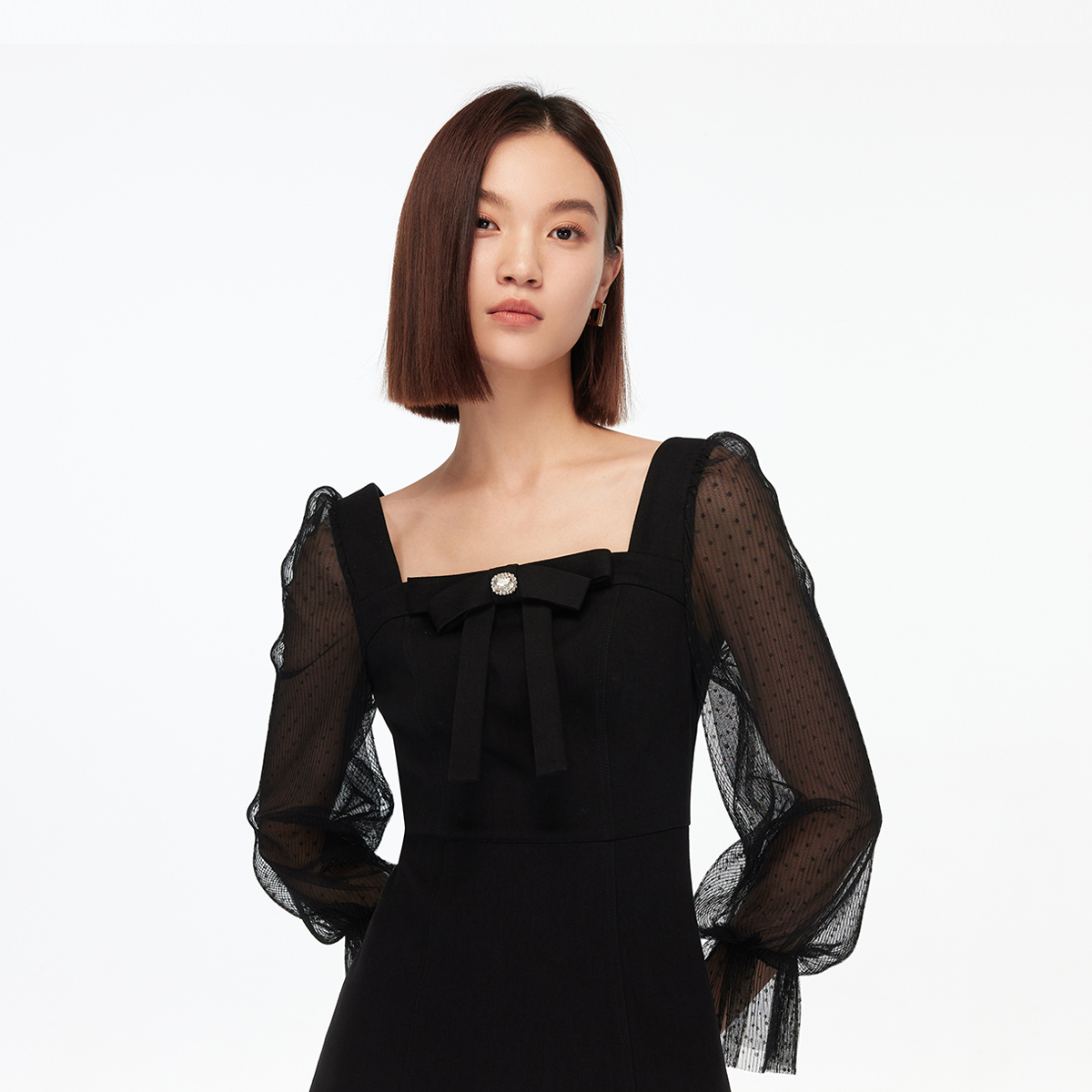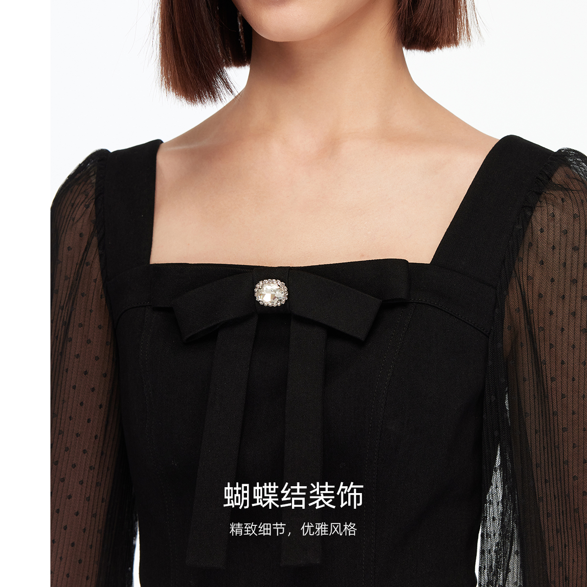 Vero Moda奥莱连衣裙2025秋冬新款含棉蝴蝶结波点泡泡袖短裙裙子