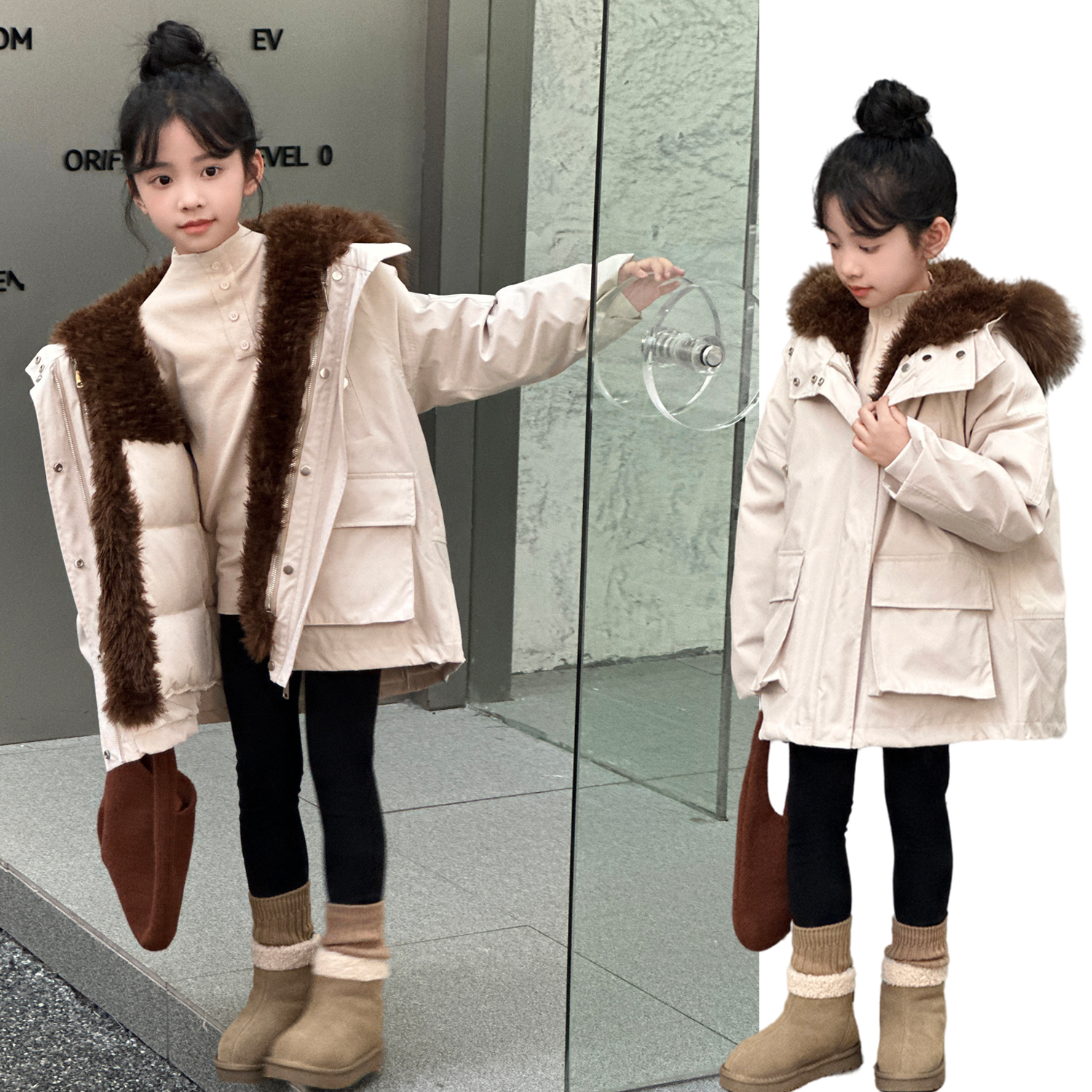 儿童皮草派克羽绒服90白鸭绒女童男童内胆毛领可拆卸三合一外套潮