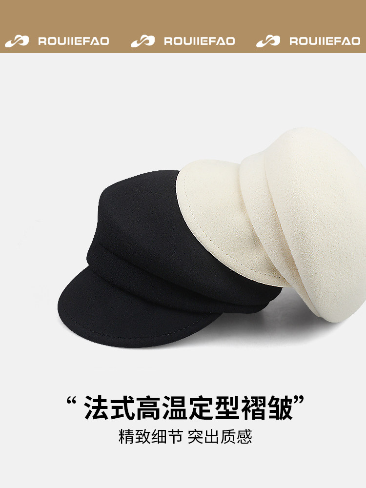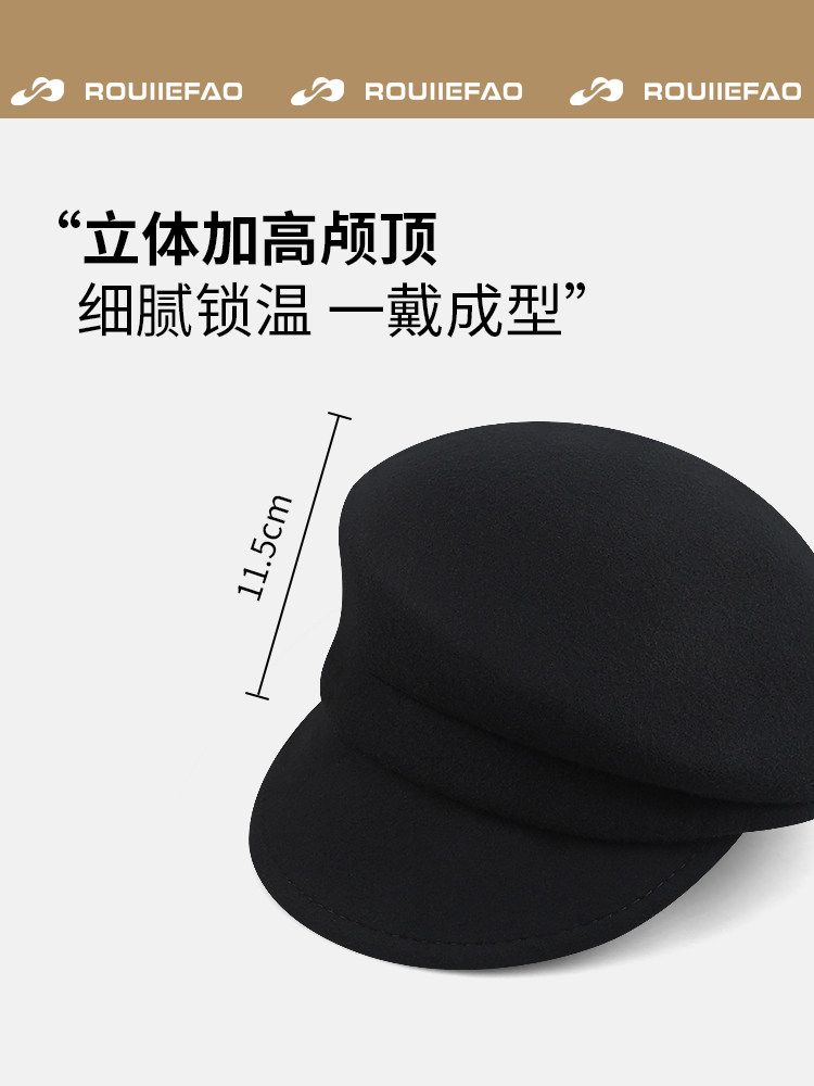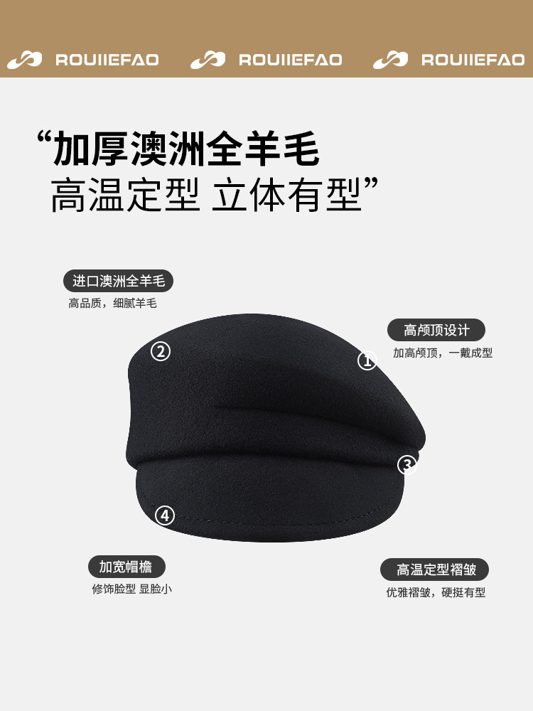 ROUIIEFAO澳洲羊毛呢鸭舌贝雷帽子女秋冬复古显脸小报童帽马术帽