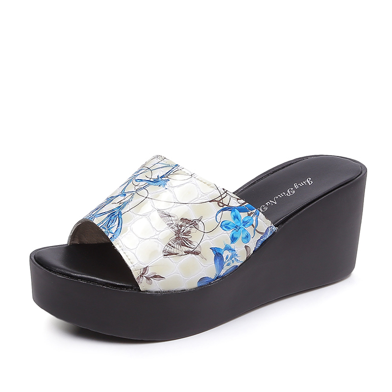 2025夏季新款原创高跟厚底牛皮拖鞋女外穿休闲舒适坡跟女鞋皮鞋