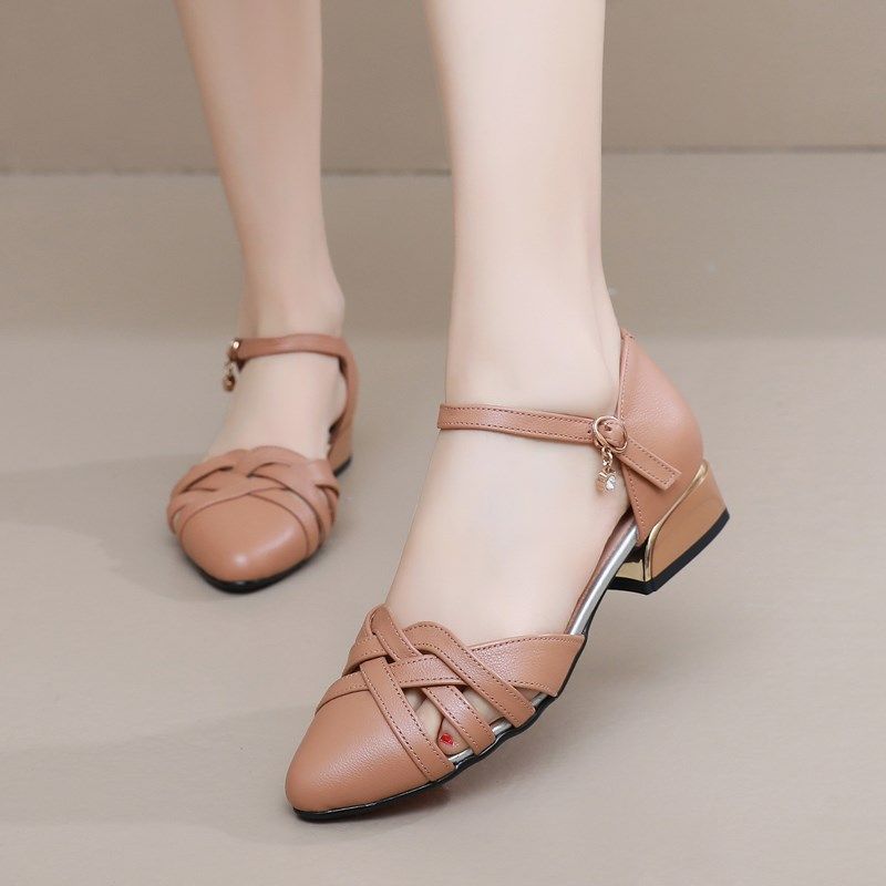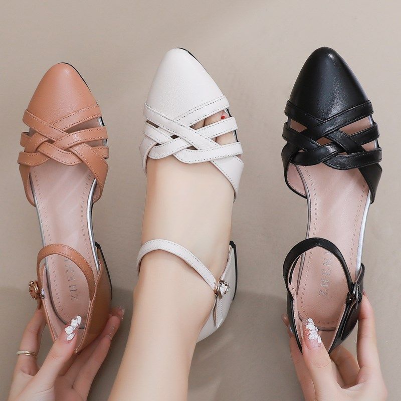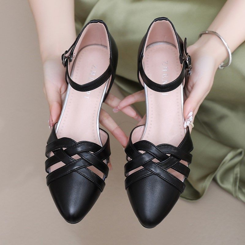 真皮包头凉鞋2025夏季百搭软底女鞋大码41到43中空一字带镂空单鞋
