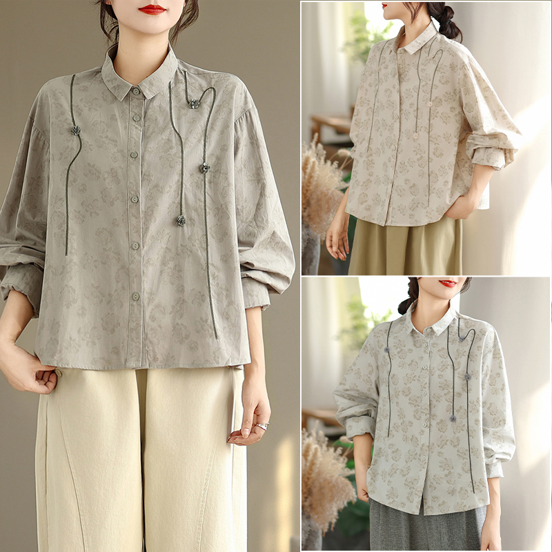 洋气复古重工刺绣立体印花衬衫女秋季新款大码胖mm法式polo领上衣