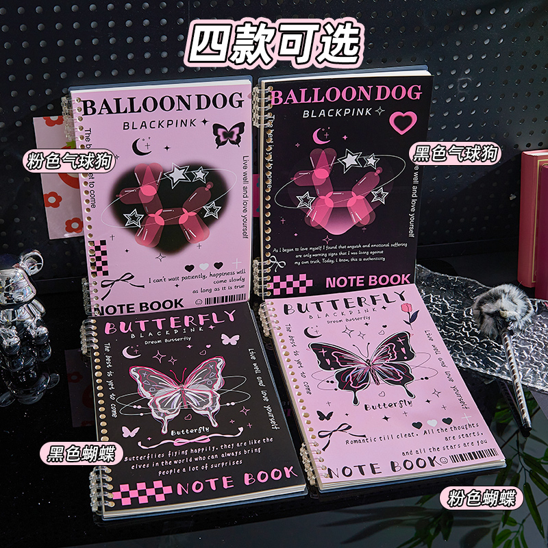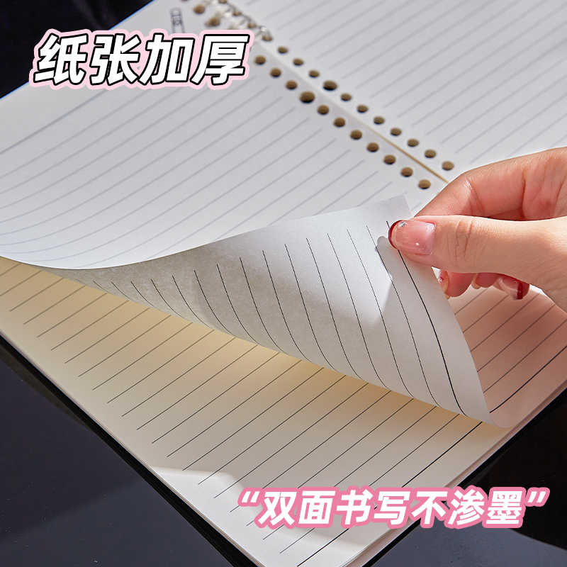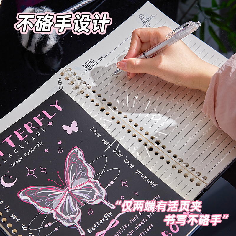 高颜值黑粉蝴蝶b5活页本可拆卸活页夹美式复古笔记本本子初中生专用线圈记事本横线本大学生考研加厚手账本子