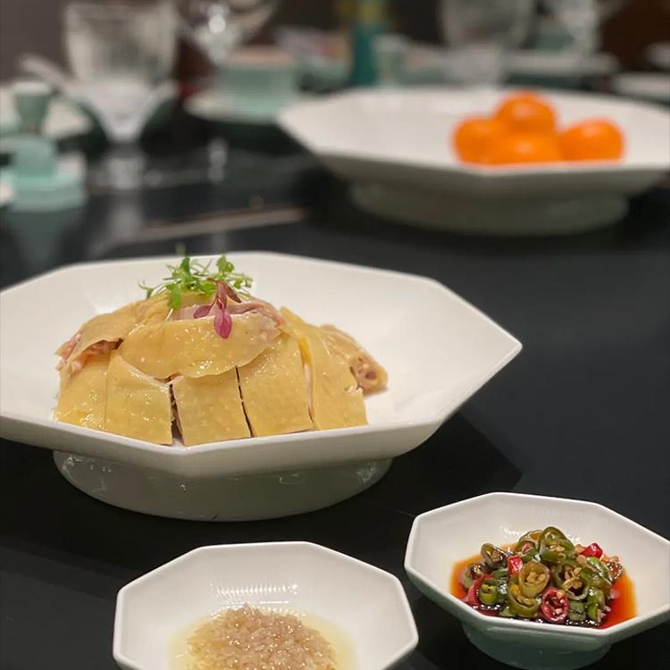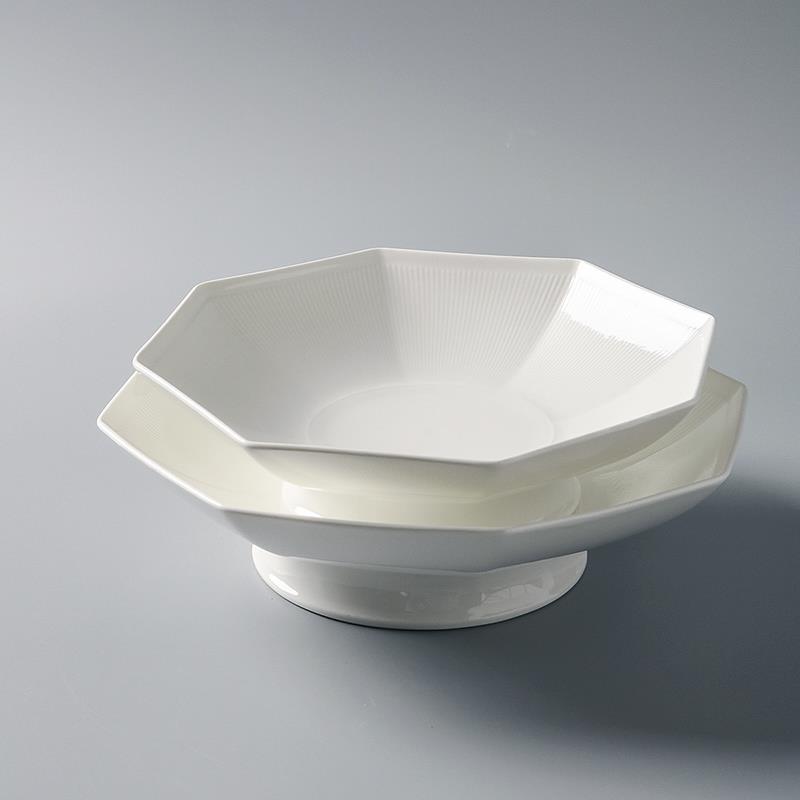 酒店中厨餐具高脚盘冷菜会所特色创意中式八边盘子浅盘纯白陶瓷盘
