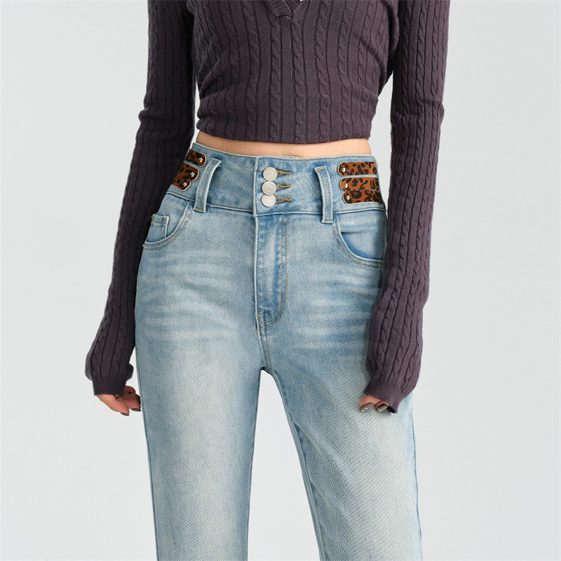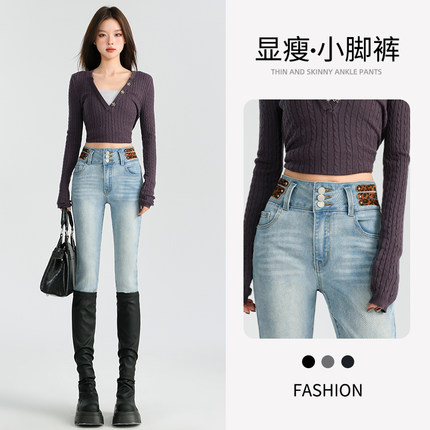 超高腰排扣收腹提臀牛仔裤女冬季新品弹力紧身显瘦小脚铅笔长裤子