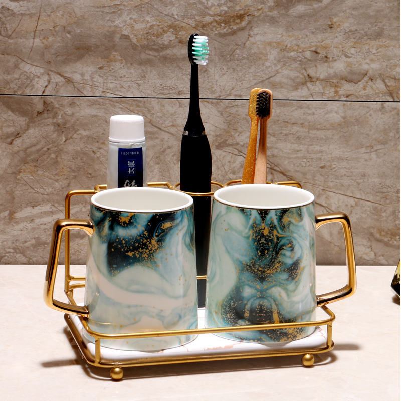 牙刷置物架情侣北欧创意时尚花样陶瓷漱口杯刷牙杯子卫浴两口之家
