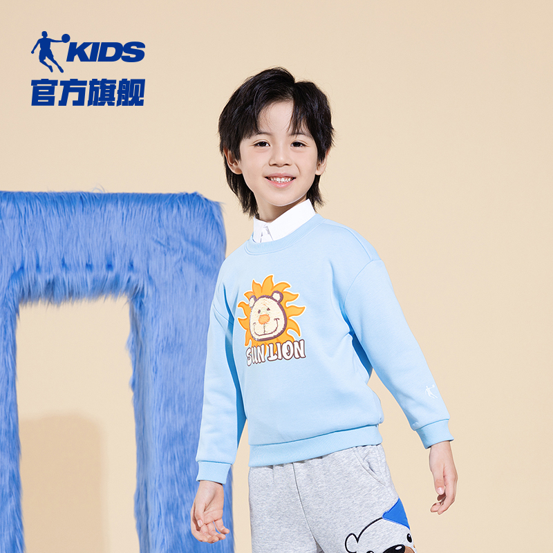 中国乔丹童装男童加绒卫衣宝宝秋冬装2025冬季新款小童长袖上衣潮