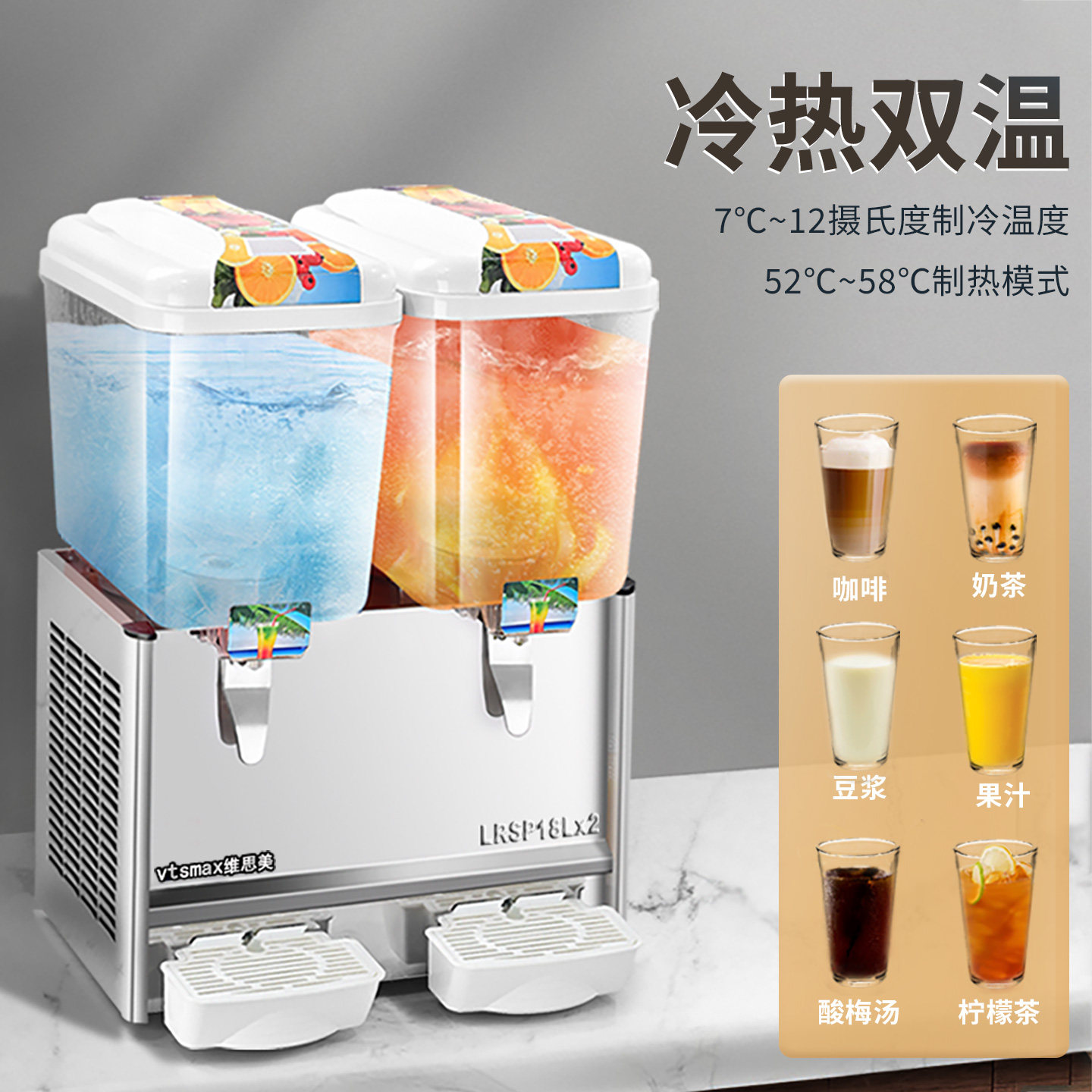 维思美酸梅汤饮料机双缸制冷商用冷饮机冷热喷淋搅拌自助餐果汁机
