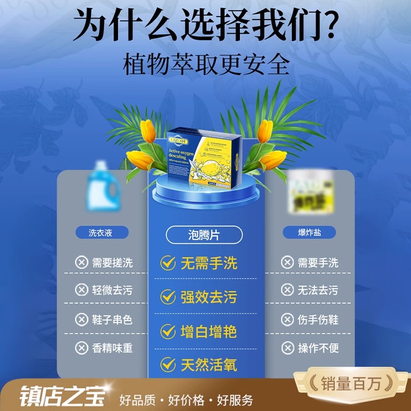 【支持试用】日本活氧鞋子衣物去污泡腾片去黄去油霉渍率达99.9%