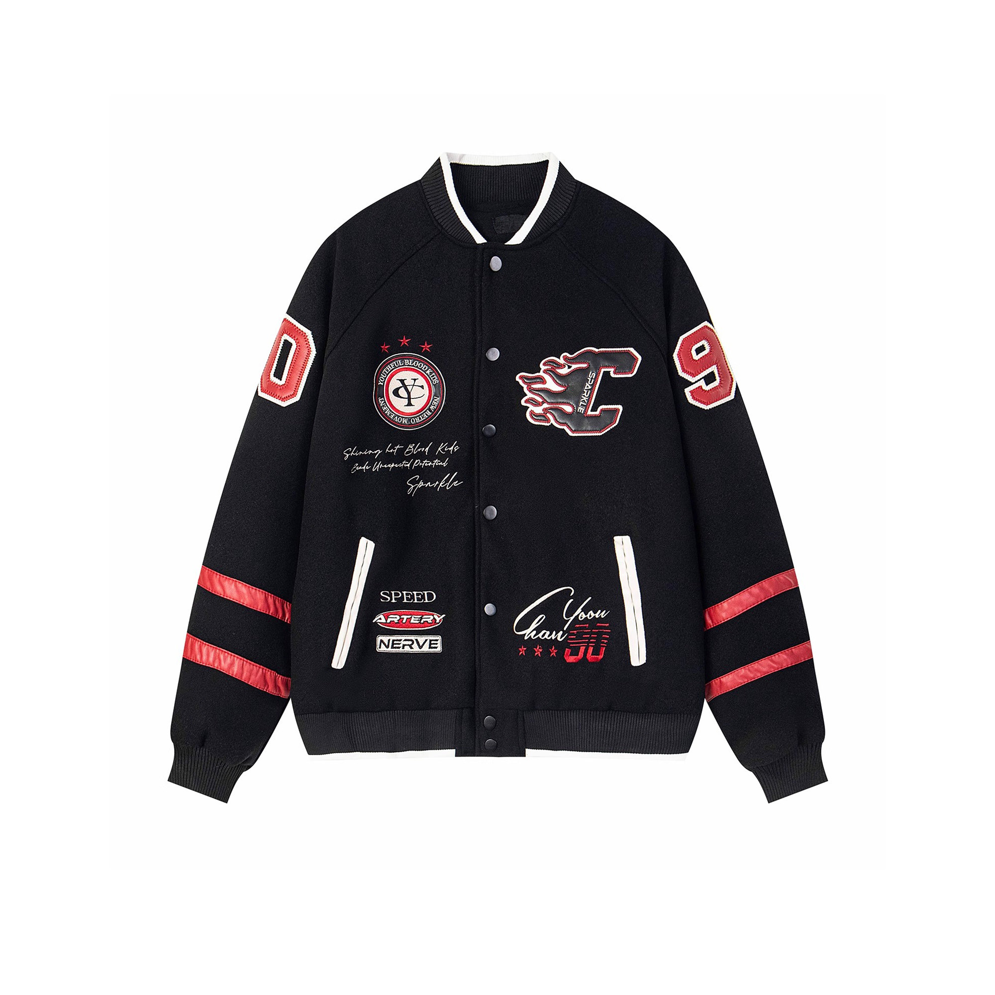 DUSK美式复古刺绣字母棒球服外套女宽松春秋运动潮牌立领夹克上衣