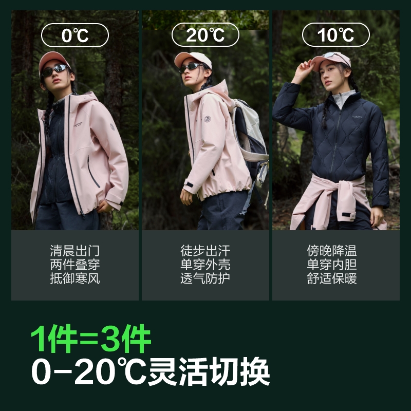 【明星同款】波司登户外秋季冲锋衣羽绒服女防风鹅绒登山服