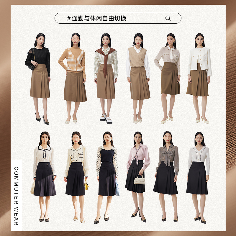 水云间黑色压褶半身裙女装2025春款气质通勤设计感a字伞裙中长裙