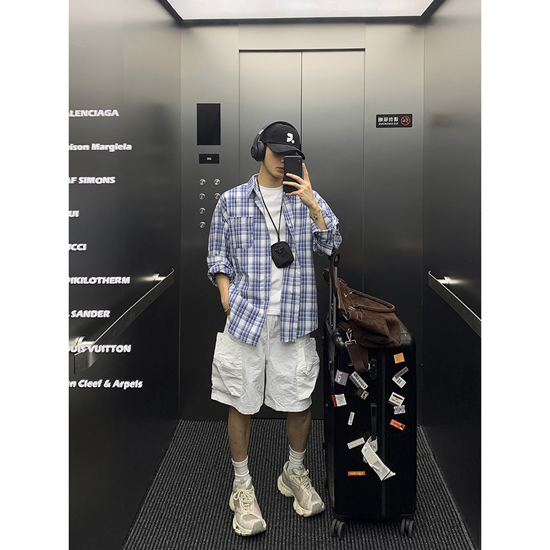 PLTH*复古美式伞兵工装短裤男夏季宽松休闲廓形直筒机能五分裤潮