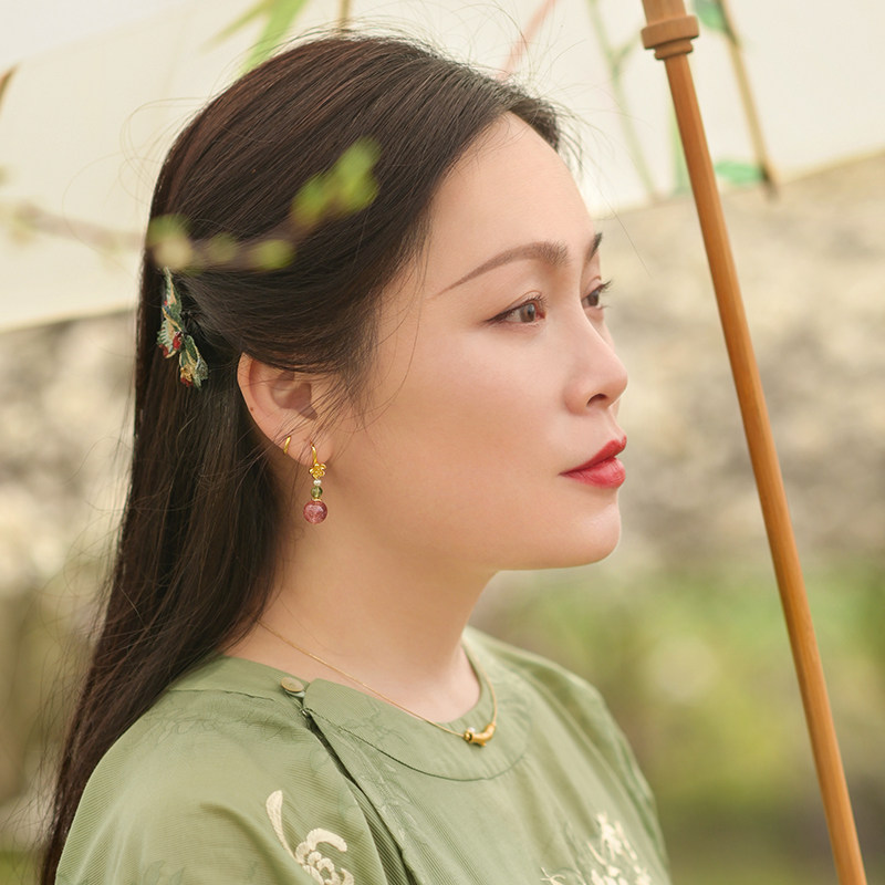 觉人血红草莓晶纯银绿磷灰耳环