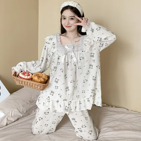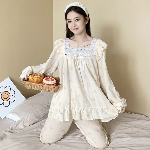 睡衣女秋季新款泡泡棉长袖套装韩版宽松大码200斤可穿家居服