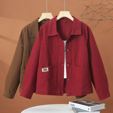 小个子短款夹克外套女春秋2025新款宽松显瘦外衣休闲百搭红色上衣