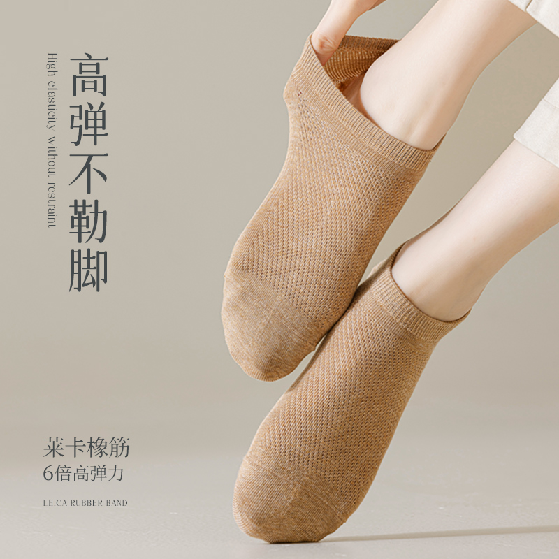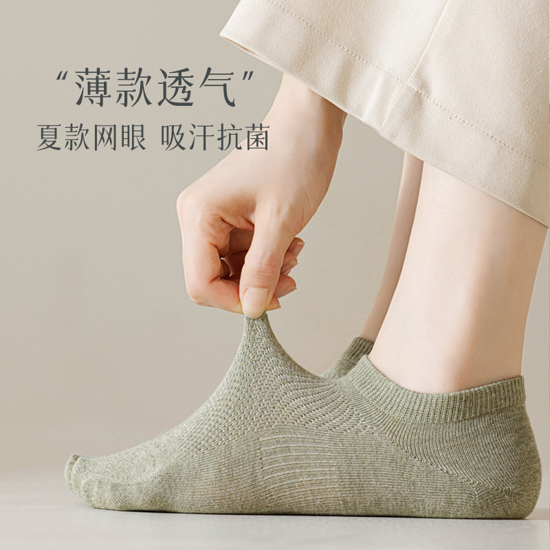 防滑不掉跟纯棉网眼薄款女士船袜