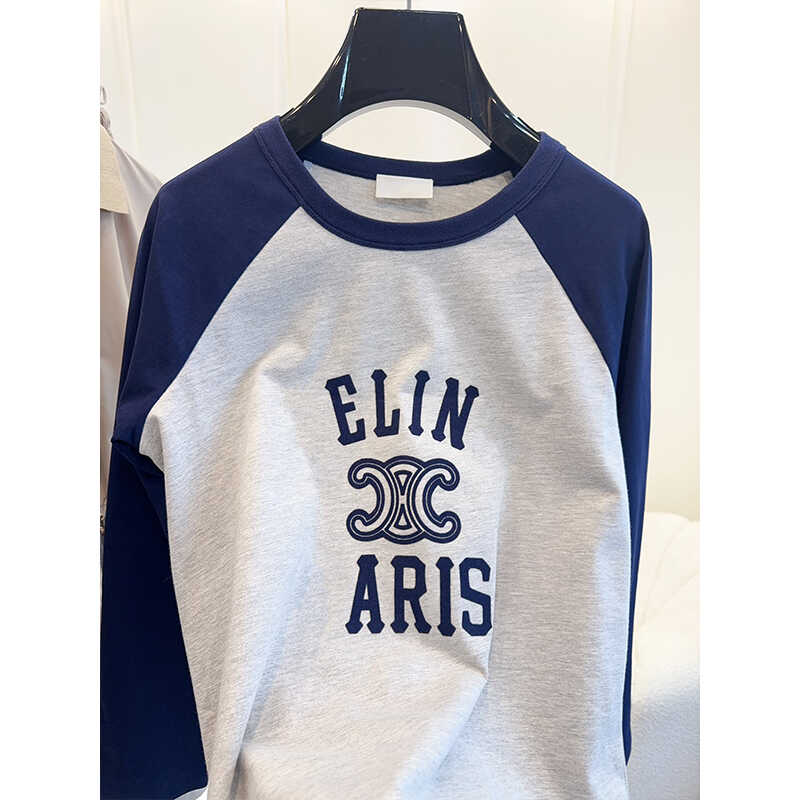 非市场货~深圳南油高端撞色圆领T恤女植绒字母宽松长袖内搭打底衫