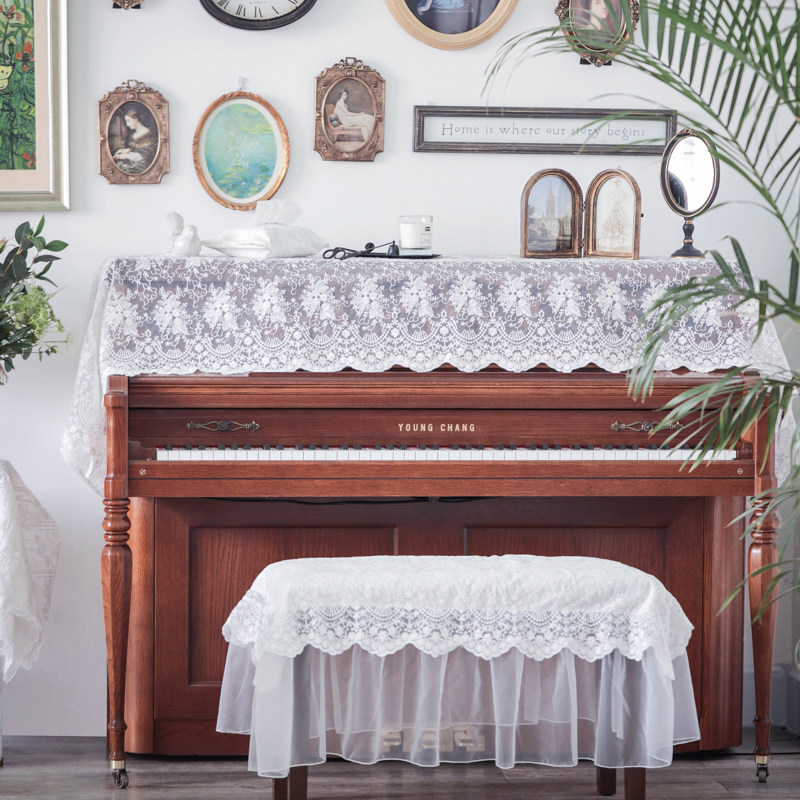 轻奢钢琴盖布蕾丝miss peony北欧美式复古法式钢琴凳子套防尘半罩