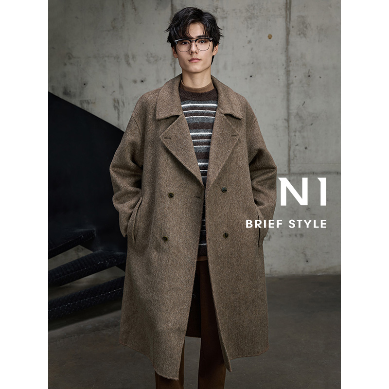 N1桑蚕丝混纺重磅织染长毛经典双排扣戗驳领手工双面羊毛呢大衣男