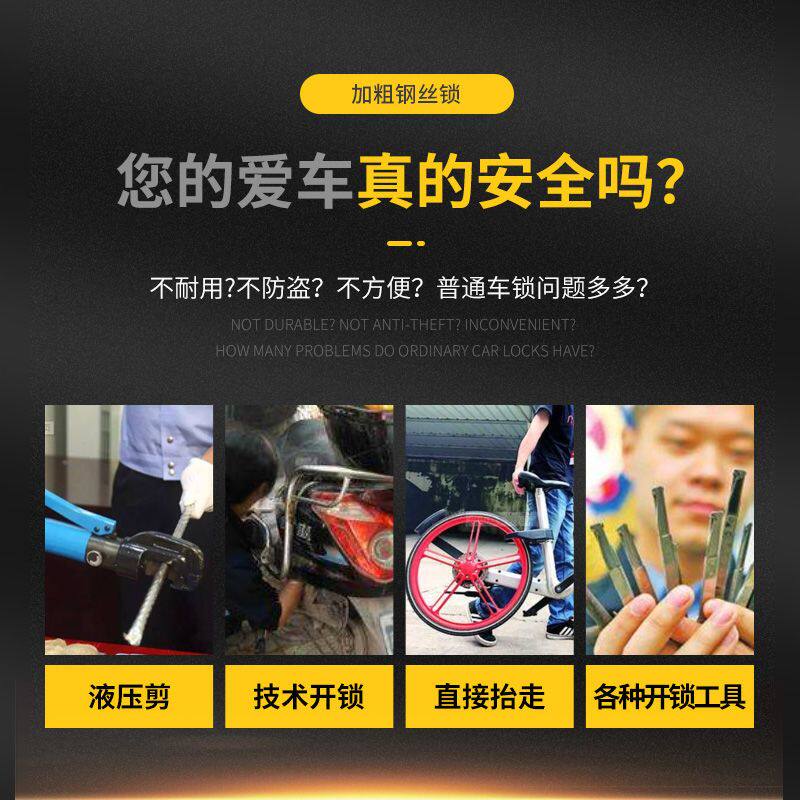 自行车锁钢丝锁单车锁山地车锁钢缆软锁防盗锁门锁电动车锁链条锁