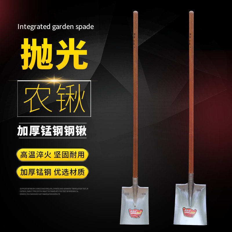全锰钢抛光加厚大铁锹木柄农用园艺户外多功能挖土家用方头方铲锨
