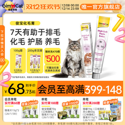 Gimborn俊宝猫咪化毛膏 麦芽化毛球猫草鱼油宠物成幼猫护肠排毛