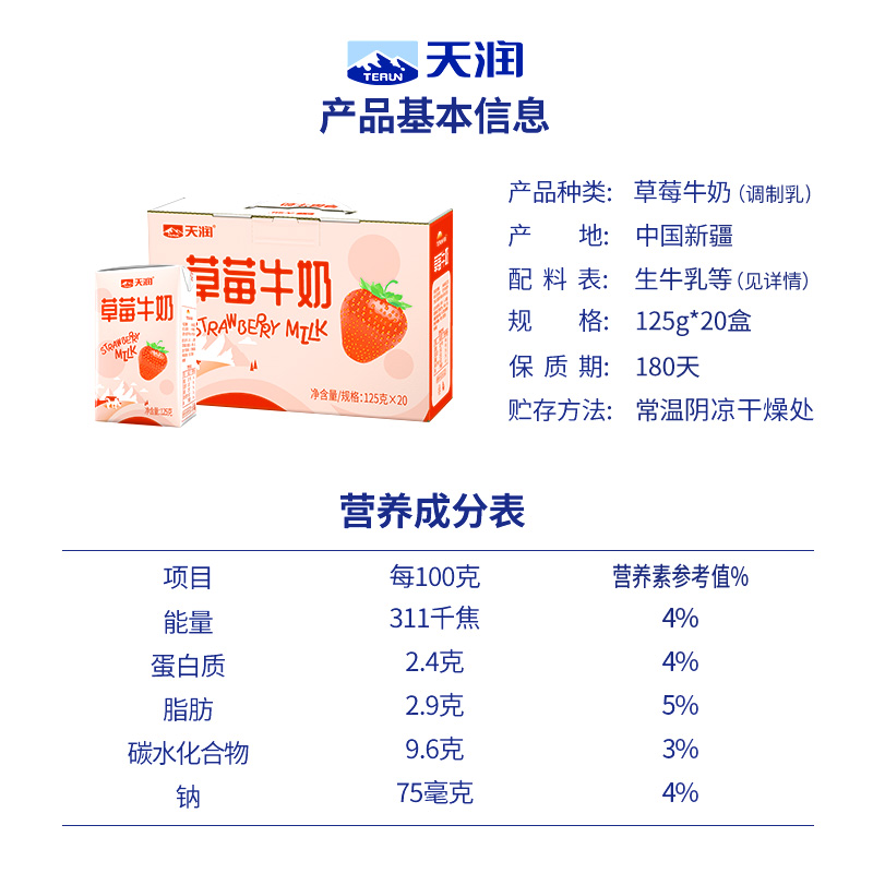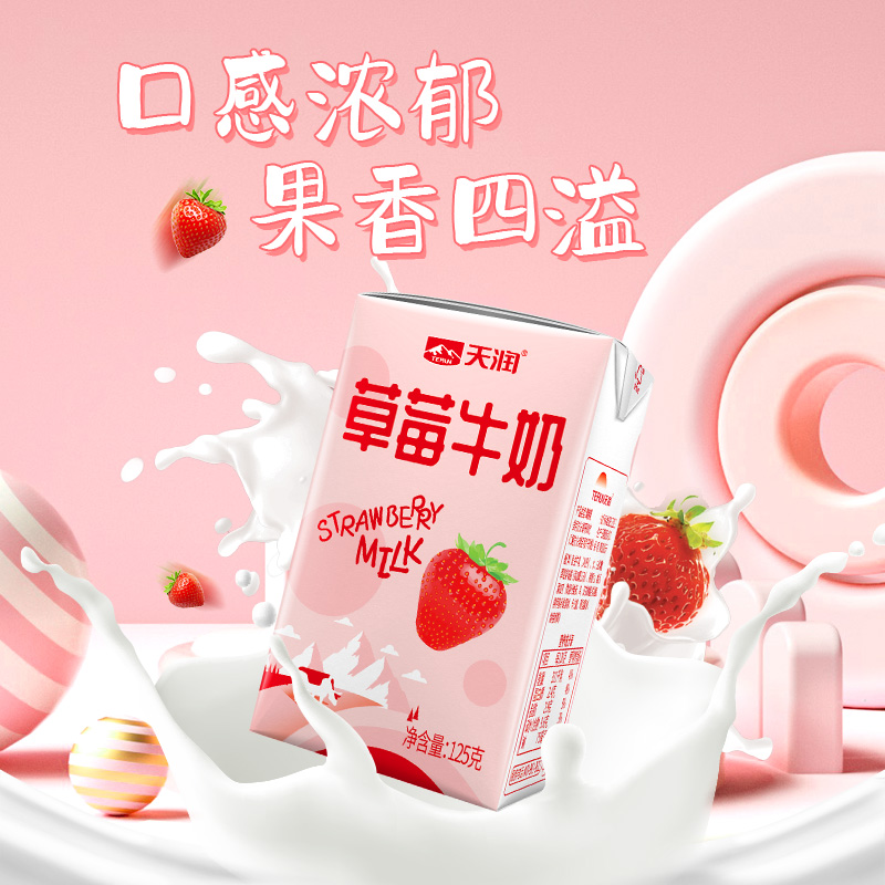 天润新疆草莓牛奶调制乳125g*20盒整箱儿童小盒装香蕉早餐甜牛奶