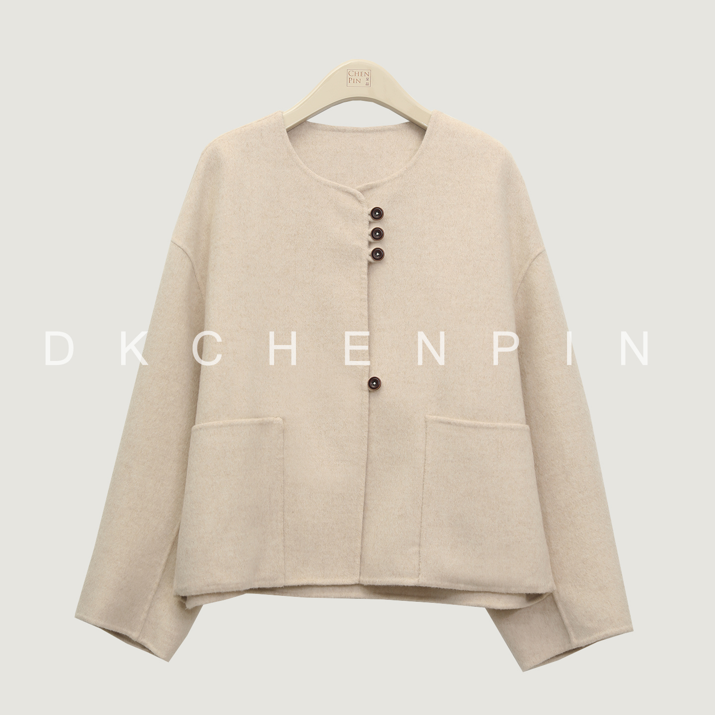 呈品复古气质手工双面呢大衣女羊绒羊毛混纺短款毛呢外套2025秋冬
