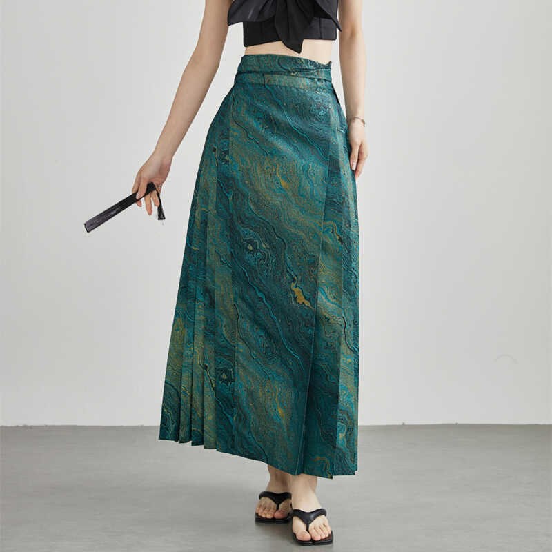 2024夏季新中式汉服国风薄款马面裙改良日常高腰百搭水墨画半身裙
