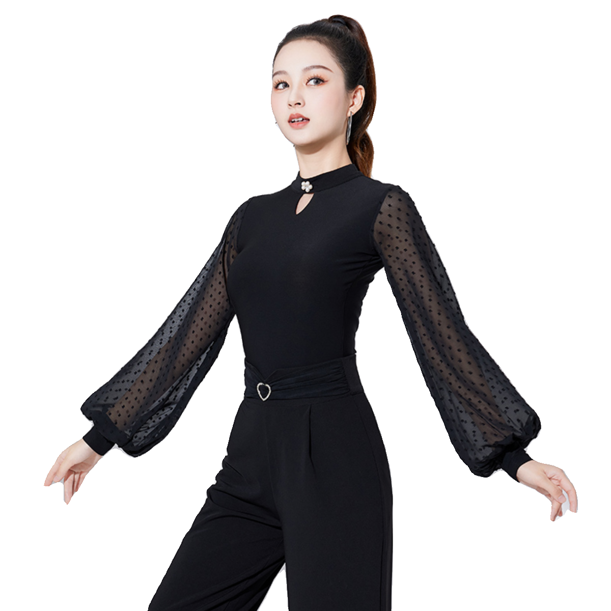 拉丁舞上衣女新款成人摩登舞长袖舞蹈国标舞练功服交谊舞演出舞服