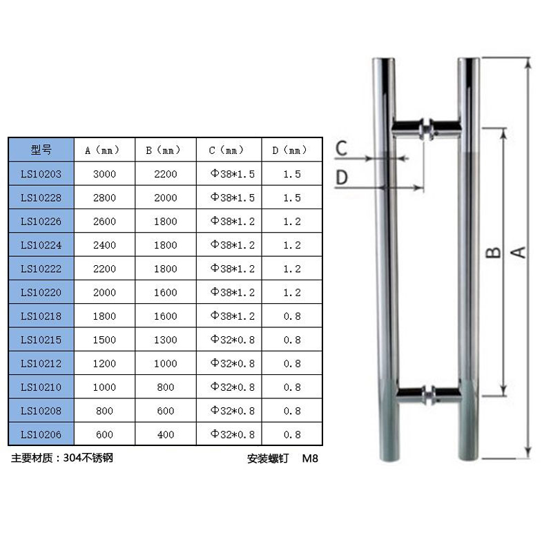 坚朗大门拉手WM03102圆管中砂304不锈钢简约KTV玻璃地弹门大把手