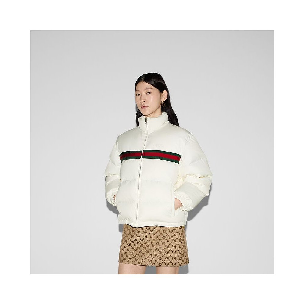 自营欧洲直邮Gucci古驰女士米白色涤纶斜纹飞行员夹克