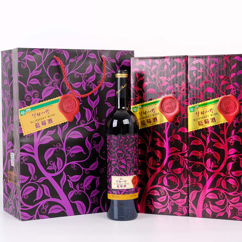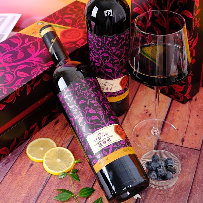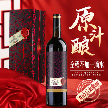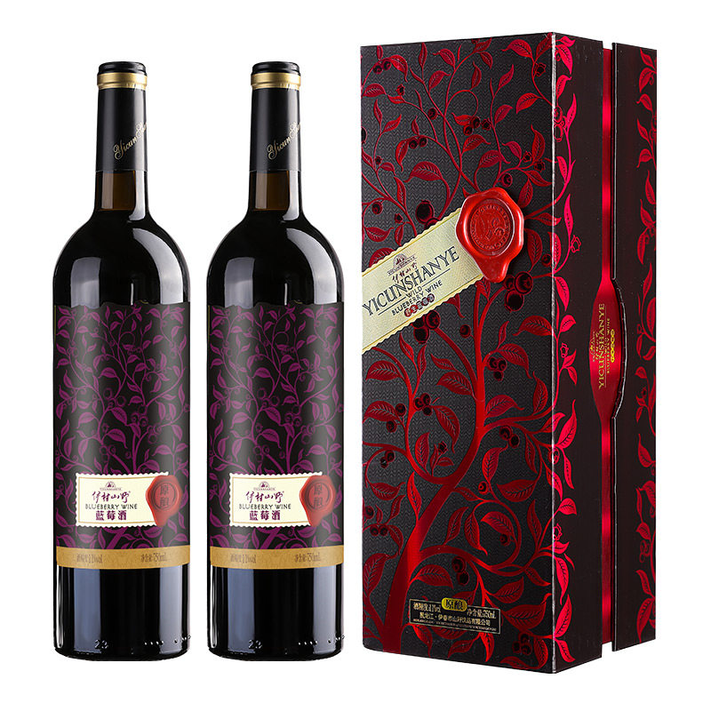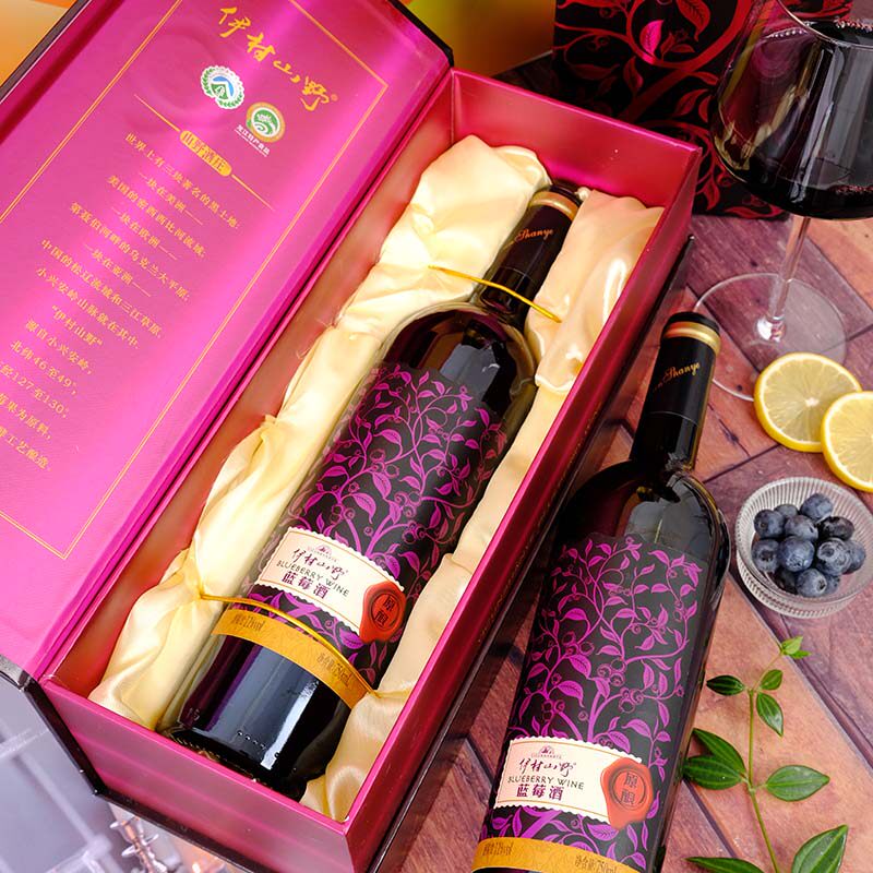 伊村山野原酿蓝莓酒11度蓝莓干红冰酒发酵原汁酒98%礼盒顺丰包邮