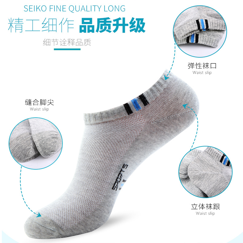 浪莎袜子男士短袜夏季纯棉超薄款船袜运动透气防臭吸汗夏天潮男袜