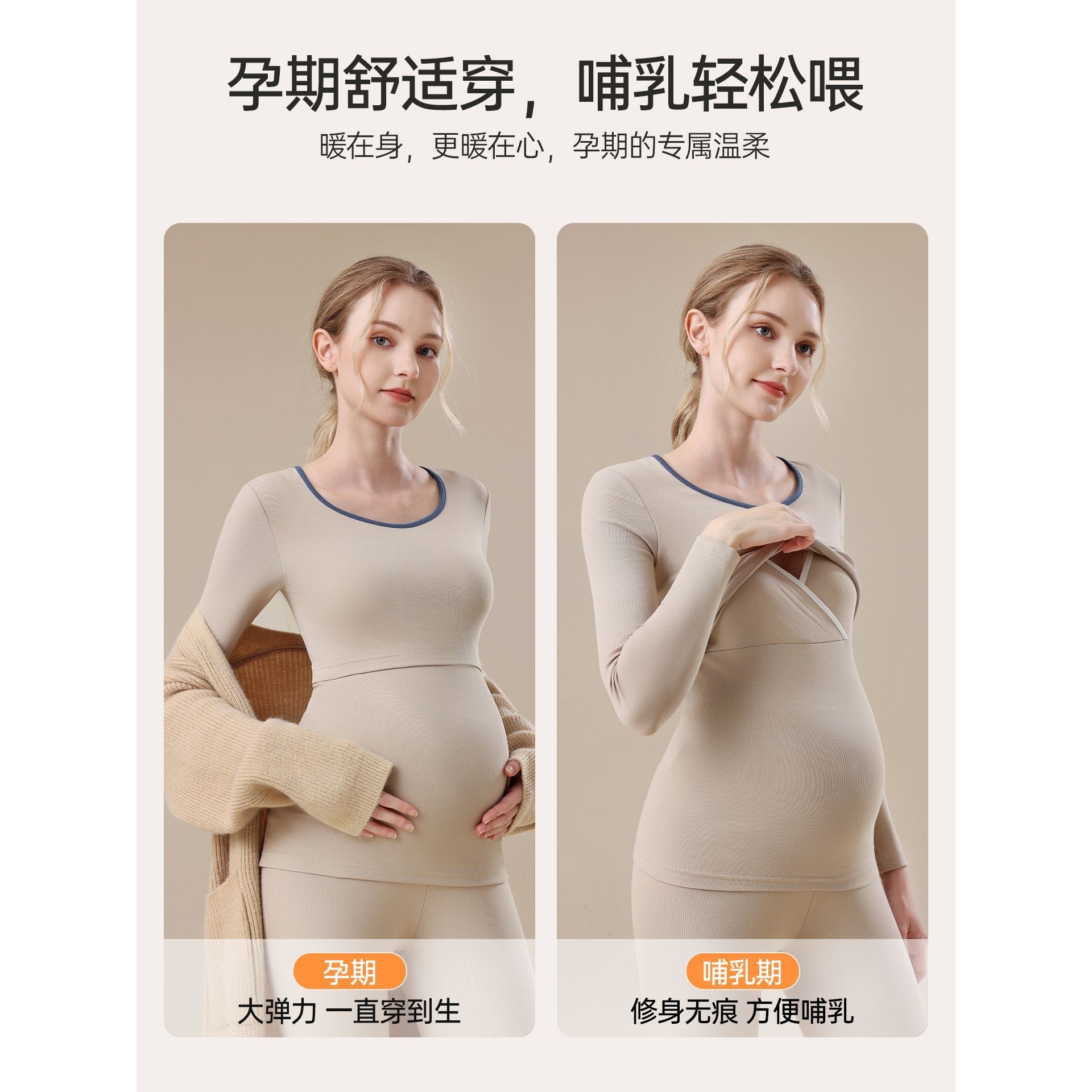 罗丽丝孕妇秋衣套装纯棉产后哺乳喂奶月子服孕期睡衣大码保暖内衣