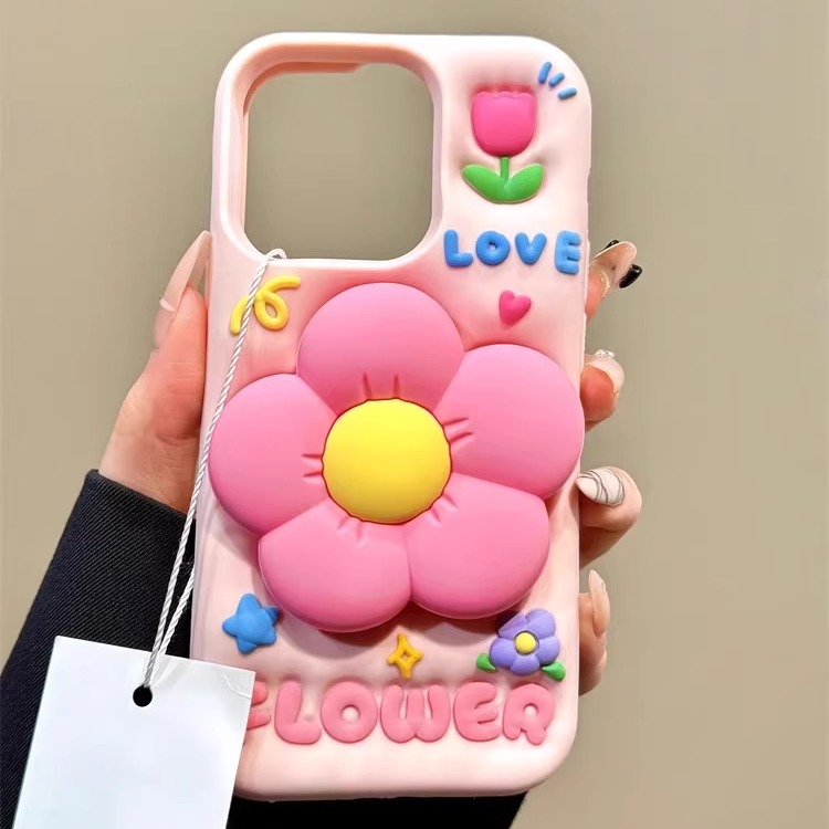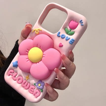 清新立体彩色花朵支架硅胶手机壳