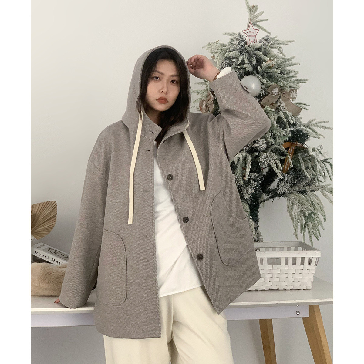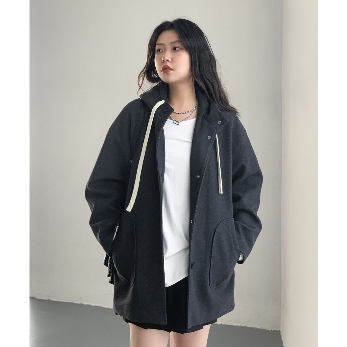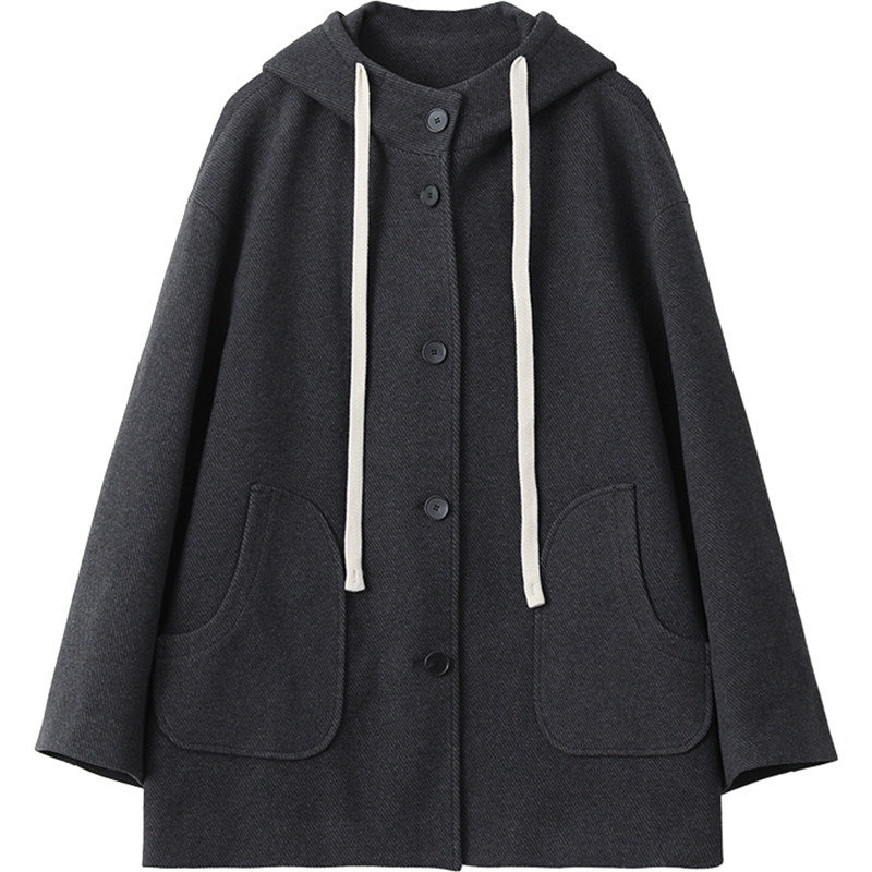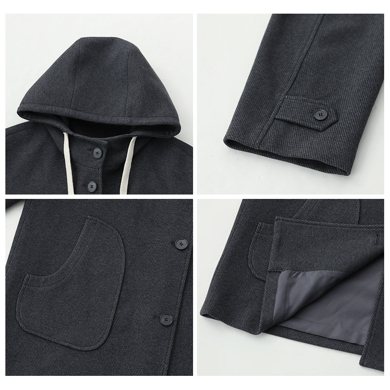 呢子大衣连帽羊毛中长款小个子