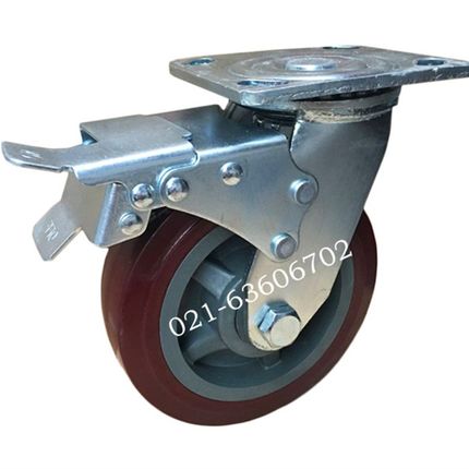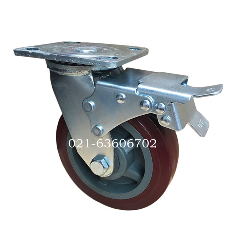 4x2加重型双轴承聚氨脂静音耐磨万向轮双刹车轮工业手推车脚轮子