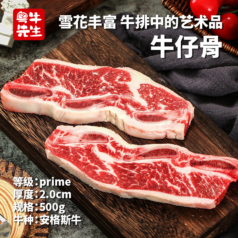 粤牛先生 美国安格斯Prime级牛仔骨原切谷饲儿童牛排进口雪花牛肉