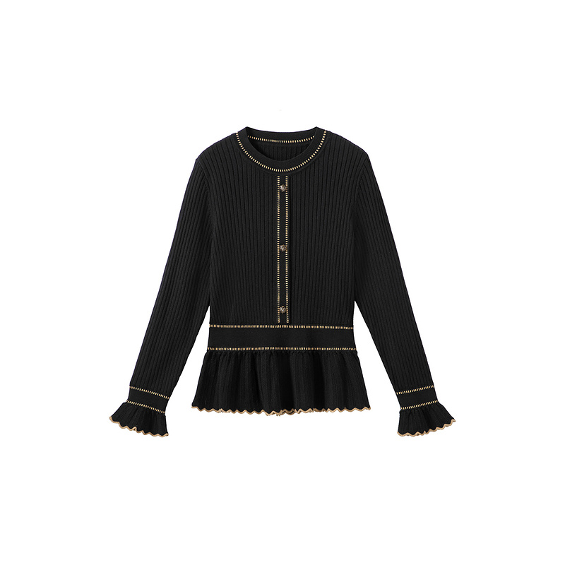 【美丽诺羊毛】YINER音儿专选女装冬季撞色竖条纹针织衫套头